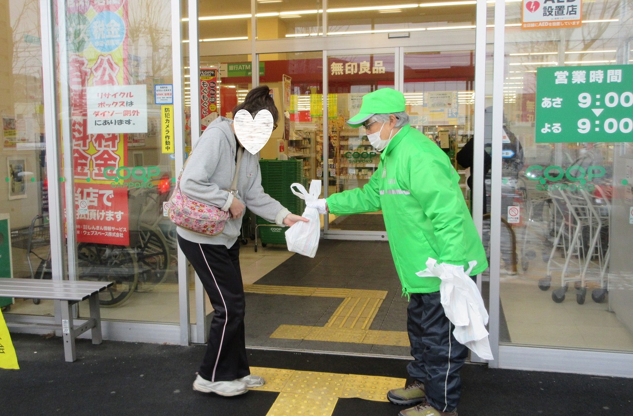 市内のスーパー出入口において、啓発グッズを手渡して薄暮期の事故防止を呼びかけました。