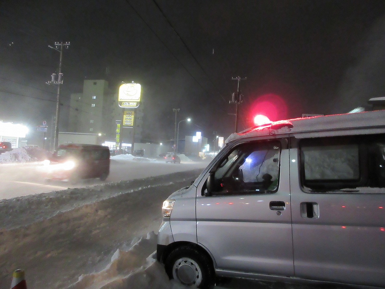 市内主要道路、国道において飲酒が多くなる歳末に合わせ、車両に赤色回転灯を点滅させてドライバーの安全意識を高揚させ、交通事故の未然防止を目的として行いました。